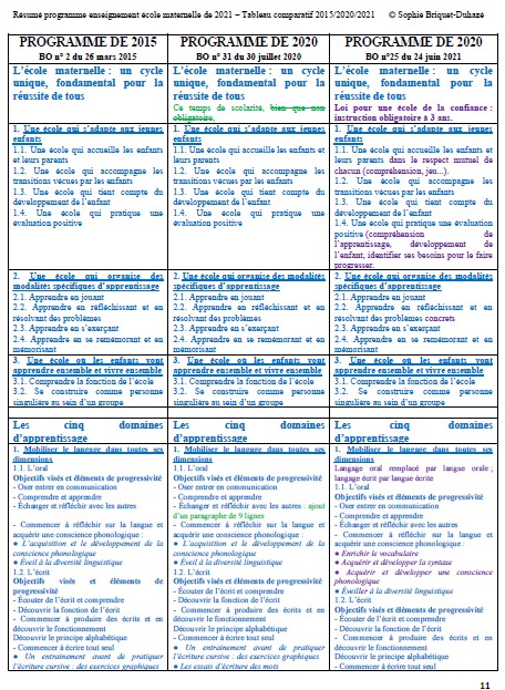 Programme maternelle 2021 comparatif