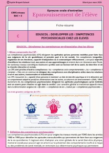 Voici un résumé des articles concernant les compétences psychosociales sur Eduscol. C’est une lecture conseillée par Devenir Enseignant pour l’épreuve orale d’entretien (thème épanouissement de l’élève) ;